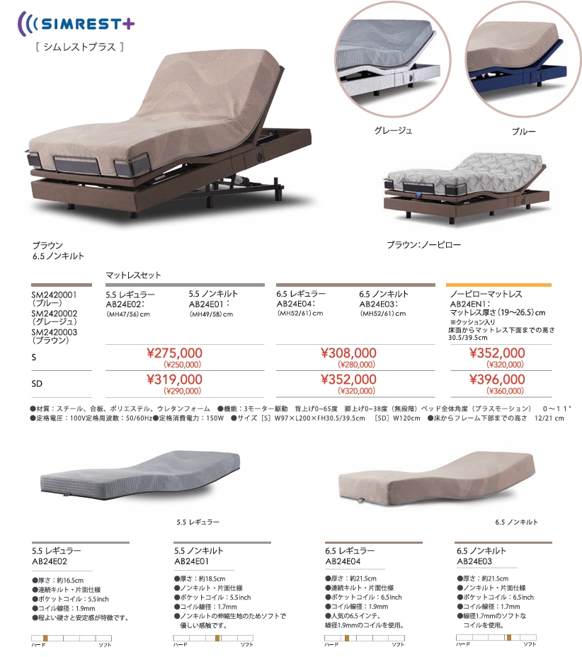 ・6.5レギュラー:一番人気の6.5インチ線径1.9㎜ポケットコイルを採用。やや硬めの仕様。厚さ21.5㎝