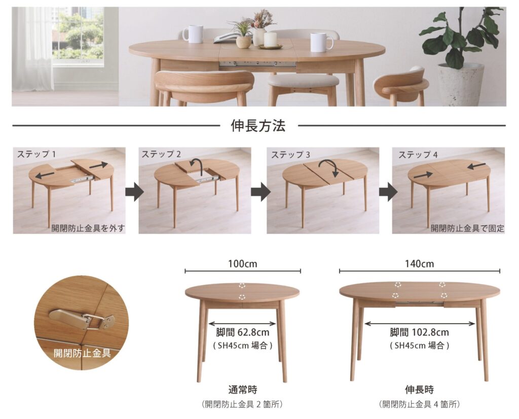 伸長式ダイニングテーブル